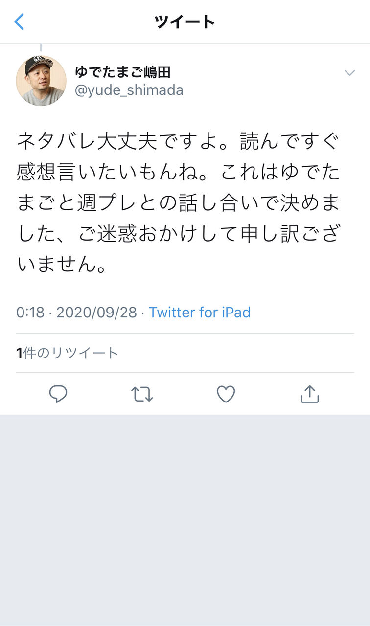 嶋田ならまた気が変わってネタバレ禁止や訴えるぞとか言い出しかねん