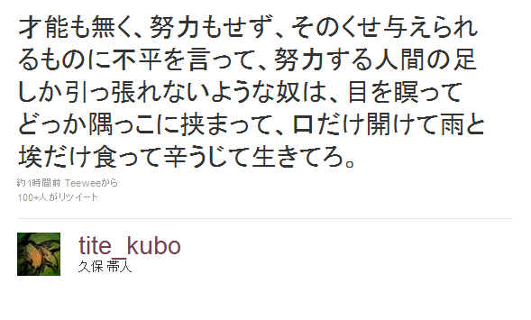 大物漫画家「俺に指図するな!嫌なら読むな!才能もない奴はどっかに挟まって埃でも食ってろ」 2021年06月12日 カテゴリ:漫画 1: 風吹けば名無し 2021/05/04(火) 07:53:58.90 ID:8sXC2COgp 【大物漫画家「俺に指図するな!嫌なら読むな!才能もない奴はどっかに挟まって埃でも食ってろ」】の続きを読む タグ :#BLEACH